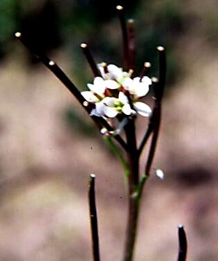 Small, white flowers are produced on stem ends. Mature seeds are propelled from siliques