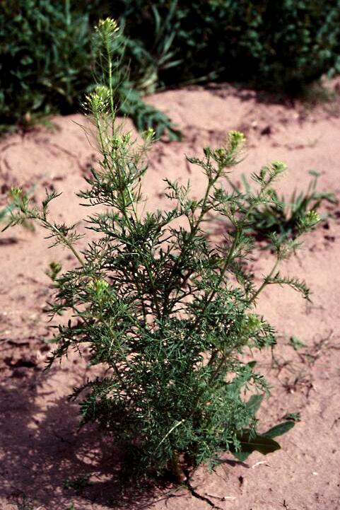 greenish-yellow. Flixweed is distinguished from other mustards because of its finely
