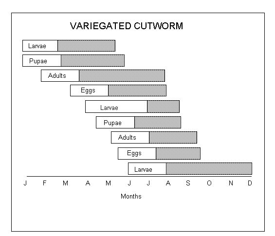 application against this species may not necessarily control variegated cutworm. One